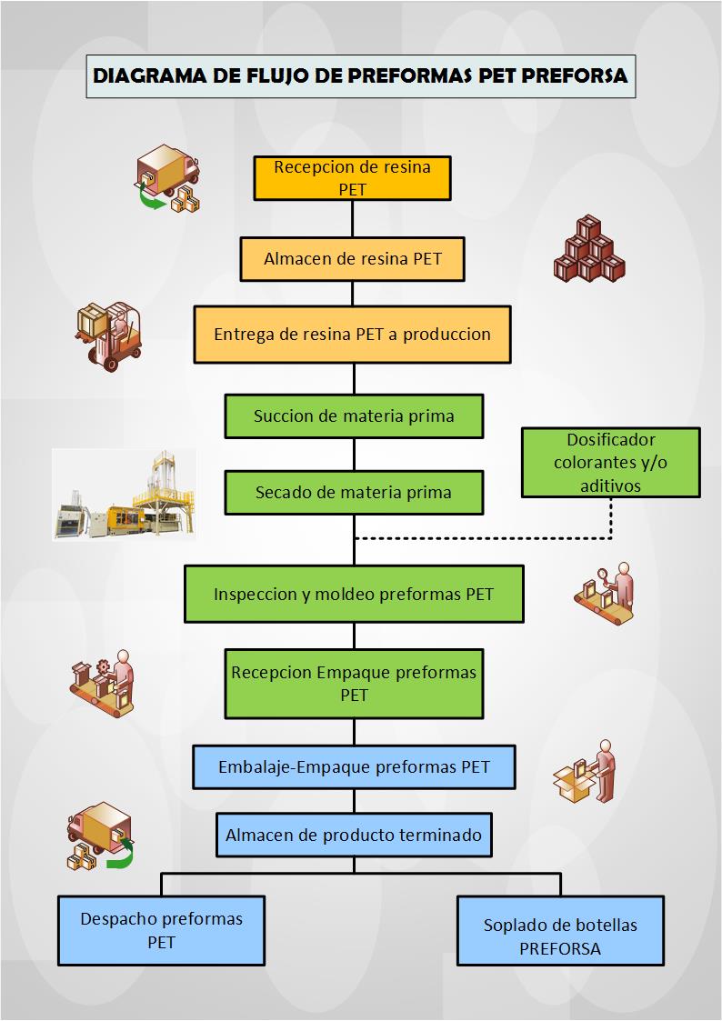 Realizamos inyección de preformas con la mas alta calidad, ofreciendo un diverso portfolio de Preformas que van desde 20.1 grs hasta 750grs. dando al cliente la posibilidad de poder determinar el gramage adecuado a su necesitad, tambien es posible brindar gamas de colores como cristal, verde, azul, fuxia y otros. los formatos de preformas van para botellas desde 200cc hasta 20 litros.
